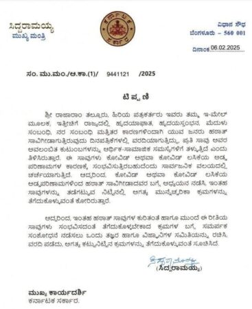 ಬೆಂಗಳೂರು: ಯುವಜನತೆಯಲ್ಲಿ ಇತ್ತೀಚಿನ ದಿನಗಳಲ್ಲಿ ಕಂಡುಬರುತ್ತಿರುವ ಹಠಾತ್ ಸಾವು ಪ್ರಕರಣಗಳನ್ನು ರಾಜ್ಯ ಸರ್ಕಾರ ಗಂಭೀರವಾಗಿ ಪರಿಗಣಿಸಿದ್ದು ಈ ಪ್ರಕರಣಗಳ ಬಗ್ಗೆ ತನಿಖೆ ನಡೆಸುವುದಕ್ಕೆ ರಾಜ್ಯ ಸರ್ಕಾರ ತಜ್ಞರ ಸಮಿತಿಯೊಂದನ್ನು ರಚಿಸಿದೆ ಎಂದು ಸಿಎಂ ಸಿದ್ದರಾಮಯ್ಯ ಮಾಹಿತಿ ಹಂಚಿಕೊಂಡಿದ್ದಾರೆ.