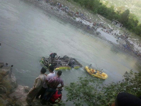 The ill-fated bus, with more than 60 passengers on board, was on its way to Ani from Kullu when it skidded and fell into the river near Jhiri, 20-km from Kullu.