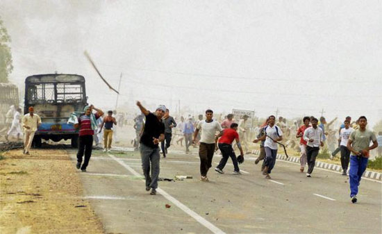 Trouble ensued when a few thousand villagers owing allegiance to the Arya Samaj gathered at a temple in the morning and began their march to oppose the opening of the controversy ridden Satlok Ashram along the Roktak-Jhajjar Road. Before the villagers reached the ashram the police attempted to stop the protestors, who began pelting stones. Initially, the police resorted to a cane charge and lobbing of tear gas shells, which went in vain. Finally the police fired in the air to disperse the crowd that had set ablaze four State owned buses, an ambulance and half a dozen two wheelers.