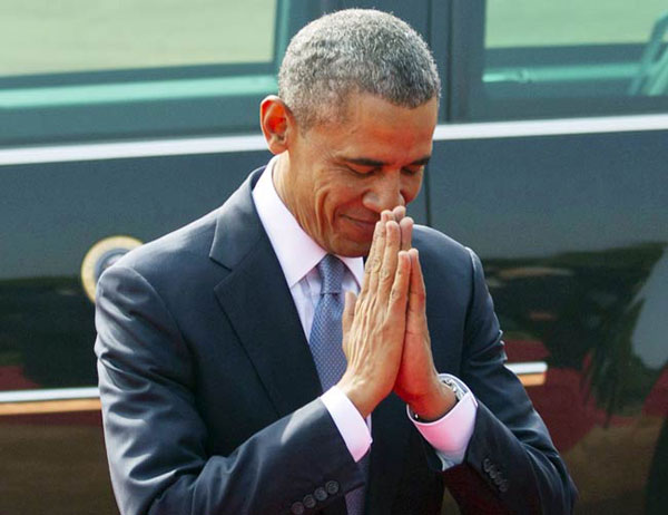 New Delhi: Barack Obama, the first US President to visit India twice, on Sunday greeted hosts in broken Hindi in a joint statement with Prime Minister Narendra Modi at New Delhi’s Hyderabad House. “Namaste, thank you PM Modi for very generous words. Mera pyar bhara namaskar,” the US President, who is the chief guest at Republic Day celebrations on Monday, said.