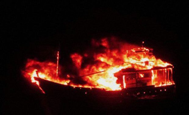 According to Defence Ministry officials, the boat was intercepted by the Coast Guards in the Arabian Sea but the four occupants on board set the vessel afire and exploded it before it sank with them.