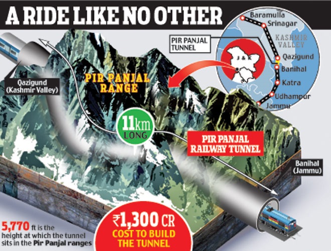 Finishing touches are being given to India’s longest railway transportation tunnel, Pir Panjal Railway Tunnel, which will link Kashmir valley with Banihal tehsil of Jammu.