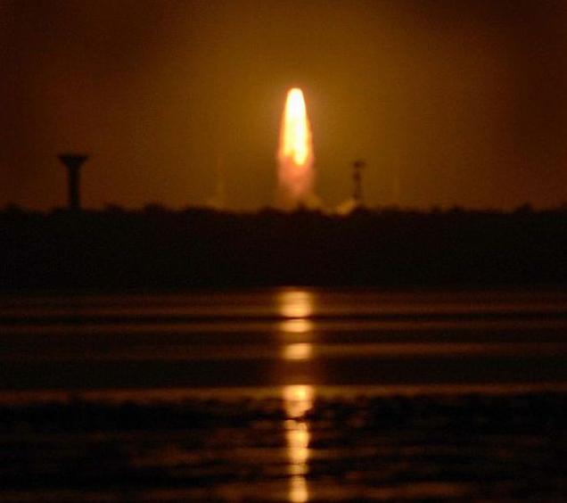 The launch vehicle, PSLV-C22, bearing the 1,425-kg navigation satellite, blasted off the launch pad at the Satish Dhawan Space Centre here at the scheduled lift-off time of 11.41 p.m.