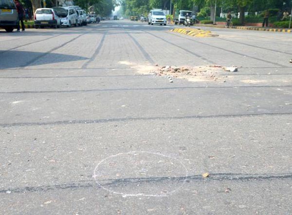 The incident occurred between 2.00 am and 2.15 am at Windsor Place of New Delhi when a group of bikers were involved in a confrontation with police officials trying to stop them from performing dangerous stunts on the roads.
