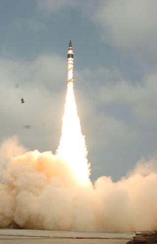 After a few hiccups during the pre-launch count down and even after the auto-launch, the 17-metre tall missile rose majestically from a mobile launcher and zoomed into the sky. After the three stages got separated as planned at different altitudes, the nose cone carrying the dummy payload withstood scorching temperatures of 3000 degrees celsius , while re-entering the atmosphere and zeroed in on to the pre-designated target point in the Indian Ocean, 5000 km away with an accuracy of a few metres after a flight duration of little over 20 minutes.