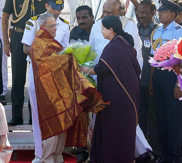 Ms. Jayalalithaa was the first of the awardees to be honoured by Mr. Mukherjee. The other awardees from Tamil cinema included M.S. Viswanathan, K. Balachandar, Vyjayanthimala, Anjali Devi and Sridevi.