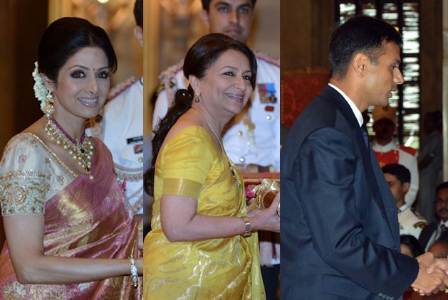 The first batch of this year’s Padma honours were handed out by President Pranab Mukherjee. Actresses Sharmila Tagore and Sridevi received their Padma Bhushan and Padma Shri respectively. Cricketer Rahul Dravid received the Padma Bhushan.