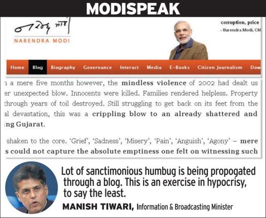 Asked for his comment on the exoneration of Mr. Modi, Congress vice-president Rahul Gandhi, at his press conference, declined to reply. However, Information and Broadcasting Minister Manish Tewari dismissed it as “an attempt to try and burnish his image for the 2014 elections.” The Congress leader said: “no expression of remorse changes the reality that thousands were massacred. There has to be closure, justice. Lot of sanctimoniousness, humbug being propagated through a blog. This is an exercise in hypocrisy to say the least.”