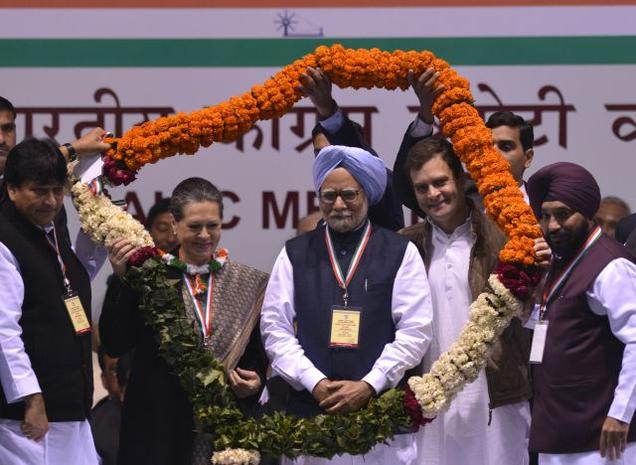 Prime Minister Manmohan Singh, Rahul Gandhi, senior cabinet ministers and party leaders from all over the country heard her in rapt attention as she spoke of the successes of the UPA coalition.