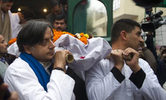 The body of Shashi Tharoor’s wife cremated; doctors say it was a case of sudden, unnatural death.