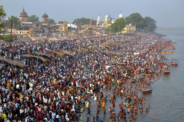 Kanya pujan and mass feasts were also held in various temples and houses to mark the festivity. Temples in the city were decked up with flowers and devotional articles. Heavy rush of devotees was witnessed at Tulsi Manas temple and various other Lord Ram temples. The three-day Navtratra Mahotsav of the Art of Living also concluded on Friday. Meanwhile, to mark the occasion, an attractive procession of the Ramkatha Mandakini Shobha Yatra was carried out from Tulsi ghat to Rajghat from river Ganga. The procession was flagged off from Tulsi ghat after bhajan recital and Ganga Aarti.