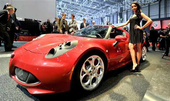 The new Alfa Romeo 4C is shown during the press day at the 83rd Geneva International Motor Show in Geneva, Switzerland, Tuesday, March 5, 2013.