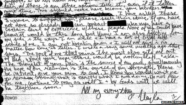 Our hearts are breaking for our only daughter, but we will continue on in peace, dignity, and love for her. In a letter from captivity in early 2014 — which was partially redacted — Muller said she was completely unharmed by her captors but heavy-hearted about the toll it must be taken on her family.