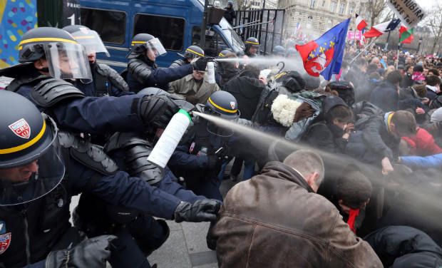 The Paris police had turned down a request from the protest organisers to march on the Champs-Elysees on the grounds it would be a threat to public order, partly because it borders the French presidential palace.