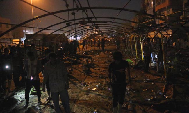 BAGHDAD: Two suicide bombers, one in an explosives-laden car and the other on foot, struck a cluster of funeral tents packed with mourning families in a Shia neighborhood in Baghdad, the deadliest in a string of attacks around Iraq that killed at least 96 people on Saturday.