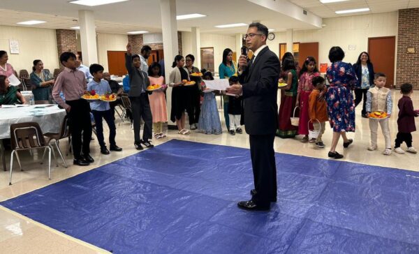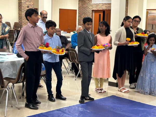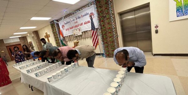 The Cultural program was initiated by a welcome note from the President of MKCA, Leonard Lobo Shenoy. Associate Pastor Rev. Oswald Nkyanungi did the blessing with holy water and then the offering of the flowers ceremony was conducted. All children participated in this ceremony. Novem was then distributed to everyone who attended.