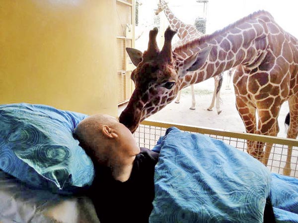 Rotterdam: He cared for them all his working life, now giraffes at a Dutch zoo have bade a final farewell to their keeper dying of cancer. In a tender moment one even leaned over the rails of their cage and gave their keeper Mario a farewell kiss, as he was wheeled into their enclosure on his hospital bed.