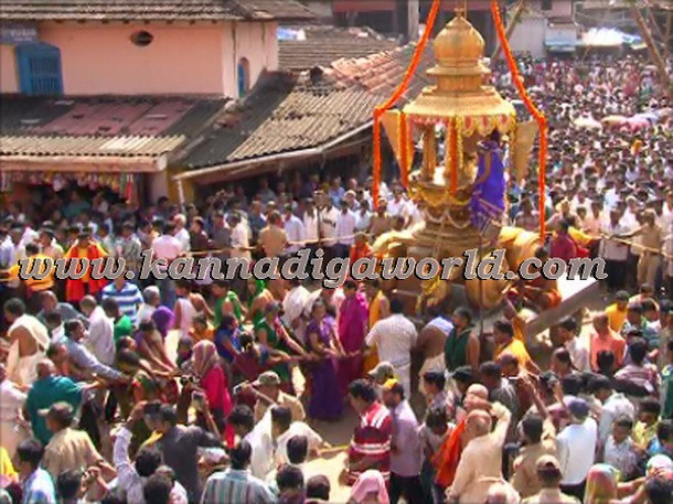 Seer of Paryaya Kaniyur mutt Vidyavallabha Theertha Swamiji offered ‘Mahamangalarathi’ to the clay idol of the deity. The seers of Shiroor mutt and Krishnapura mutt also offered ‘Mahamangalarathi’ to the Lord. The ritual was followed by throwing of coconuts, fruits at the devotees. Eatables like laddoos and chakkulis were given to the devotees as ‘Prasadam’. Several folk and fancy groups, including tiger dance troups added colour to the procession.