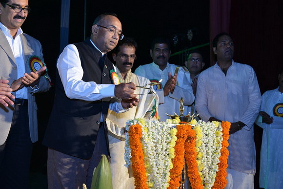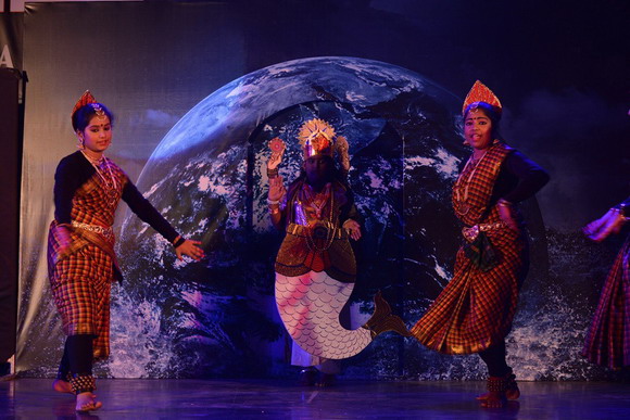 The cultural program commenced with welcome dance from the children of the Natya Veda Dance School. The stage of Tulu Parba became colorful with the arrival of Mr. Vilas Nayak on the stage. The ace speed painter, the finalist of ‘India’s Got Talent’ on Colors TV brought the stage alive with his paintings of Yakshagana character colorful costume which is popular in Tulunadu, “Mother Teresa” with glitters alone and the Girl’s face upside down. He also painted a patriotic portrait depicting national integrity with four different canvas frames in tandem with dance drama “Sauragini Rashtra” enacted by the Koota children and directed by Cultural Secretary, Mr. Suresh Salian. Semi classical Dance by Anjali school of dance was a visual treat. Another dance drama, “Dashavatara” also directed by Mr. Suresh Salian and with dance choreographed by Mrs. Shantala Sathish mesmerized the audience with scenes of different incarnations of Vishnu shown on the stage.