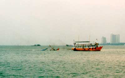 It has reported that immediately after taking tourist one round in the sea,a strong wave due to rough sea hit the boat and capsized and as a result child which was with mothers hand, was thrown in to the sea.