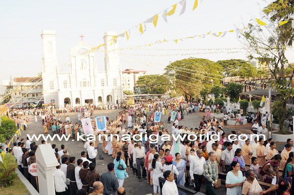 Mangaluru, January 5: Devotees thronged at Milagres Church here and participated in the annual Eucharistic procession of Mangaluru diocese which moved to Rosario Cathedral from the  church on Sunday January 4th.