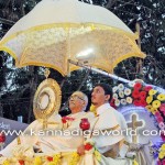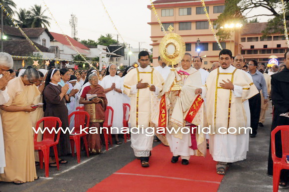 Mass was offered by Dr Aloysius Paul D’Souza- Bishop of Mangalore at Milagres Church followed by procession. The bishop led the procession to Rosario Cathedral where adoration of the Holy Sacrament was held.