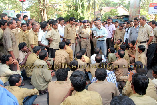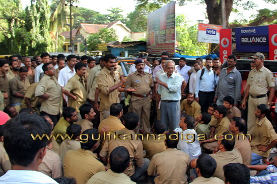 Mangalore, May 25: It has been reported in the city that on May 24, Friday auto rickshaw drivers staged a protest by blocking the road near central railway station alleging that traffic police personnel damaged an auto rickshaw.