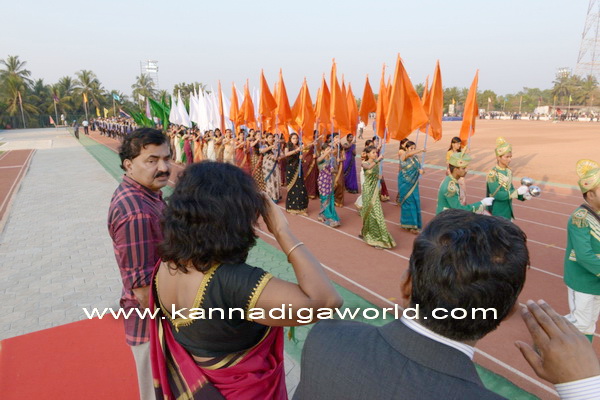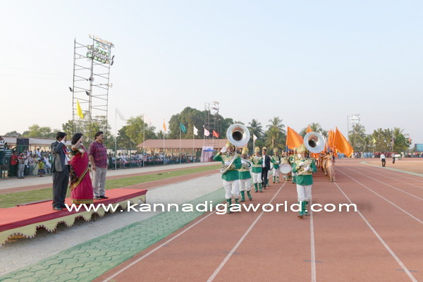 Professor K S Ravindranath, Vice-Chancellor of Rajeev Gandhi University hoisted the flag. Athlete Srujana delivered the oath to the athletes. Sports torch was lighted by the athletes Joyleen Lobo, Basavaraj Horatti, Jamaluddin, K S Ashok and MR Poovamma.