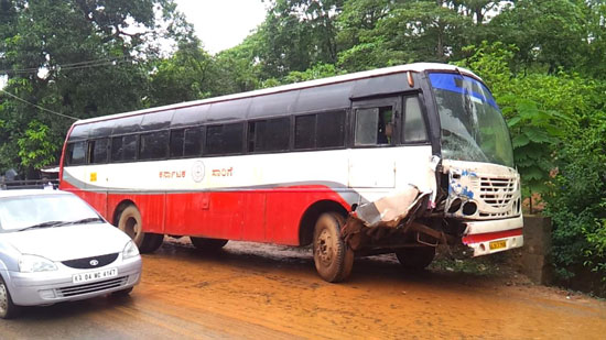 Police identified the deceased as Peter Mascarenhas, driver of the jeep, Leena Mascarenhas, councillor elect, Preetham, her son and Anthony, her brother. While Peter died on the spot, the other three died on the way to hospital, police said. The accident caused a huge traffic jam. Police had to struggle for nearly two hours to clear the traffic. Police have arrested Durgaprasad, the bus driver. A case has been registered in Puttur traffic police station.