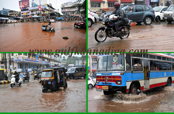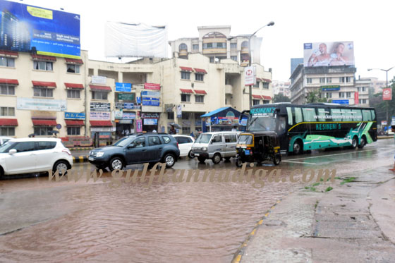 In has been reported that due to stagnant water of the rains on the road, smooth flow of the traffic has been affected badly in places like Rao&Rao circle, M G Road,Kankanady and some other places. In Bendorewel ward Vas-lane, it has been reported that one wall compound of private company has been collapsed near Kalpana road junction.