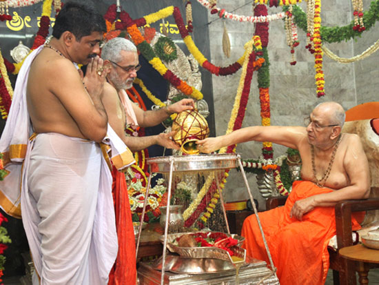 In commemoration of the great occasion, the seer offered Kanakabhisheka to Sri Vyasa Raghupathi using the newly made silver Kanakabhisheka Dharapatre and Swarnamishri. There was also Samaradhane (mass feeding).