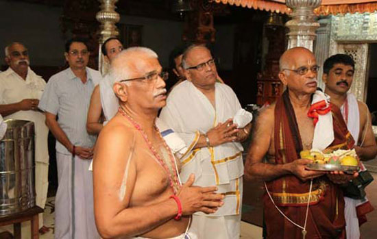 Mahaprarthana was offered to Lord in the beginning in presence of seer, priests and devotees in commemoration of the great occasion. This was followed various other poojas like shree Lagha Vishnu Havana,Poornahuti and Mahapooja to Shree Vyasa Raghupathi,the presiding deity Kashi Mutt Samsthan.