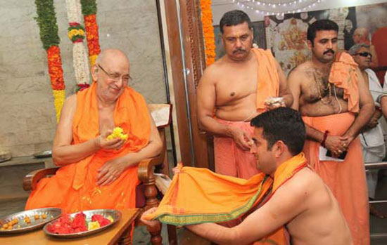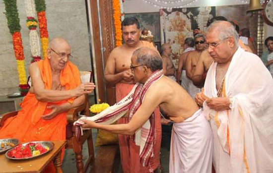 Mangalore, June 11: Srimad Sudhindra Theertha Swamiji’s 70th sanyasa deeksha mahotsava was celebrated at the Sree Venkataramana temple, in Car Street on June 10, Monday.