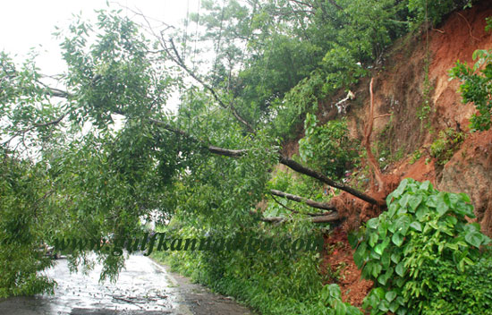 In Karkala Kaabettu Cholpadi cracks have been observed in the house of Bifathima due to tree fall, resulting Rs.30, 000/ damages. In the same area six electric poles have been reportedly fallen resulting Rs 60,000/loss to MESCOM.