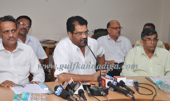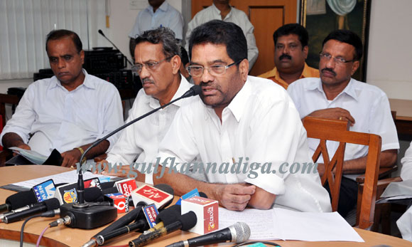 Mangalore, June 11: M N Rajendra Kumar, President of SCDCC Bank while speaking to press reporters in the press meet held at SCDCC Bank head office on June11,Tuesday said in his speech that SDCC (South canara district central co-operative bank) in co-ordination with Navodaya Grama Vikasa Charitable trust will felicitate the newly elevated ministers and legislative assembly members of Dakshina Kannada and Udipi districts, on June 16 Sunday, in a ceremony to be held in the Loyola hall of St.Aloysius college at 10.30 am.