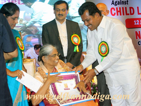 The award was handed over to Prof.Hilda Rayappan, founder director of the centre by labour minister P T Parameshwara Naik,in the programme,which was held on June 12 to mark the “World Day against child labour” at Jnana Jyothi auditorium in Palace Road, Bangalore.