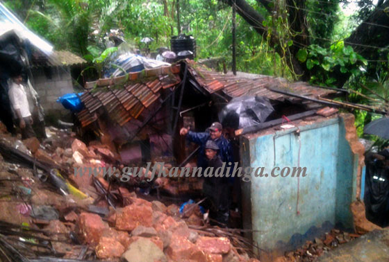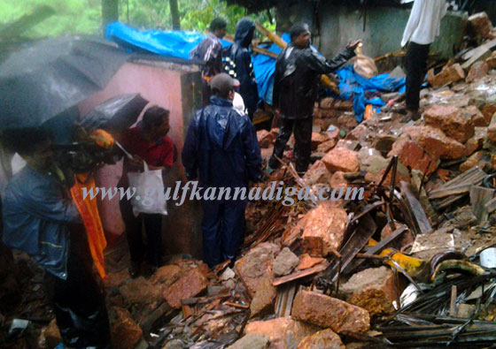 Mangalore, June 18: As a result of incessant rain lashing in the district continuously for the past few days, a compound wall of commercial complex collapsed on the tiled houses below on June 18, Tuesday morning, claiming four people dead and seven people injured at Thottilugundi in Bajpe.Sources said another house was also damaged in the incident.