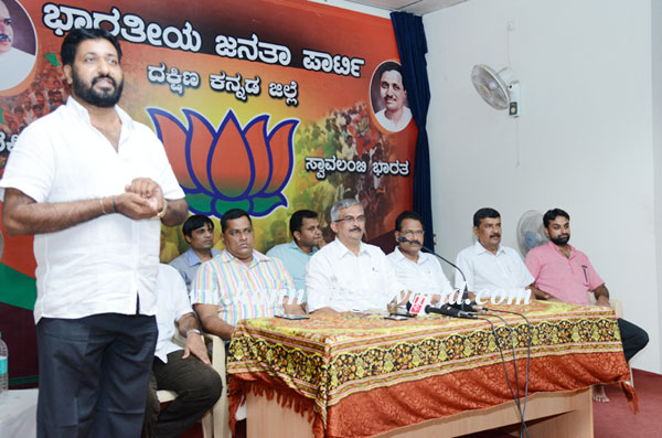 Former minister Krishna J Palemar, BJP corporator Sudhir Shetty along with others were present during the press meet.