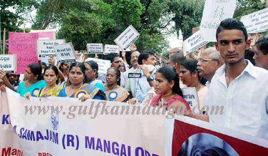 Starting from city’s K S Rao road till DCs office, protestors moved in groups and protested against the brutal gang rape of final year medical student at Manipal and demanded for the immediate arrest of the culprits.