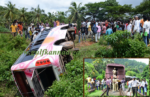 The incident took place since the crossing did not have gate and the bus fell into nearby trench.