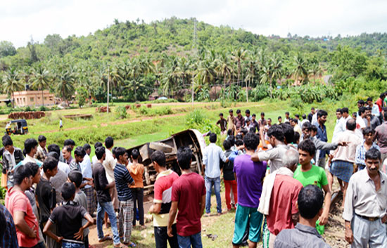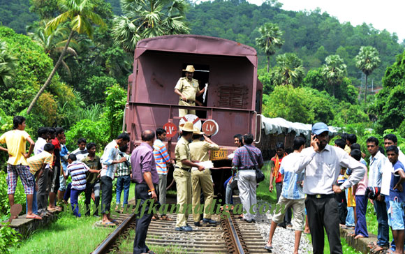 Mangalore, Jun 30: It has been reported that a mini tourist bus with four women and four year old child along with driver and conductor and driver rammed into goods train at Adyar crossing on June 30, Sunday.