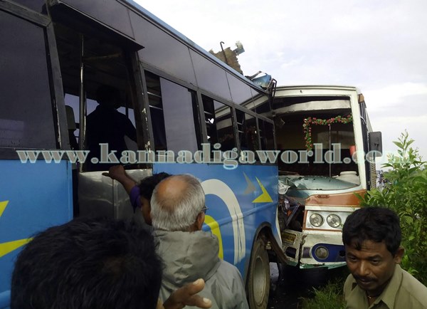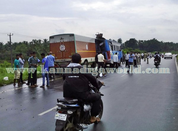 Merita was rushed to a hospital in Brahmavar where she expired. Ten other bus passengers suffered injuries who are admitted to a private hospital in Brahmavar.