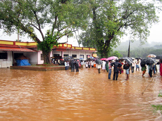 The heavy and incessant rain in Kundapur taluk resulted in flash floods in the areas like Navunda, Barkur, Koni, Kalavara, Beejadi, Kedur, Ulthur, Kedur, Maravanthe, Badakere and Salbuda on Wednesday. Besides Sowparnika River was flooded. As the Kubja River in Siddhapur crossed the danger mark, water entered inside the premises of Brahmi Sri Durga Parameshwari temple in Kamalashile on Wednesday. However, the water level in the temple has receded on Thursday.