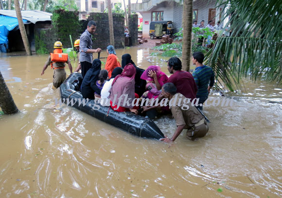 It has also been told that local corporator Usman Kallapu, Permannur V A Madhav and others were busy shifting the people who have been trapped in the flood water to a safer places from morning.Bazil D’Souza, former president councilor of Town panchayat has extended his helping hand in shifting process.