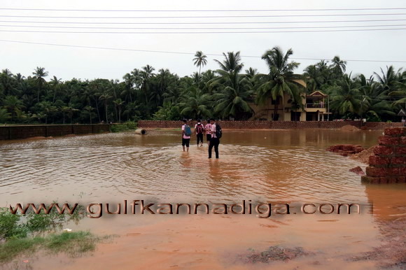 Mangalore, July 04: It has been reported that as a result of flooding due to heavy downpour for the last two days in the outskirt of city, throw normal life out of gear and made the movement of the people horrible in places like Kallapu,Jeppinamogaru and surrounding areas.