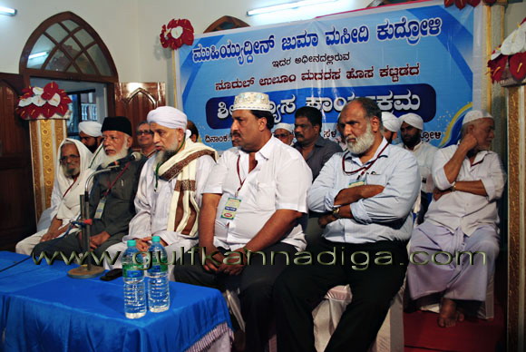 Mangalore, July 04: A foundation stone was laid for Noorul Uloom Madrassa, which is under the management of Muhiuddin Juma Masjid Kudroli, by Dakshina Kannada Zilla Quazi Shaiquna Thwaka Ahmed Musliyar on July 04, Thursday.