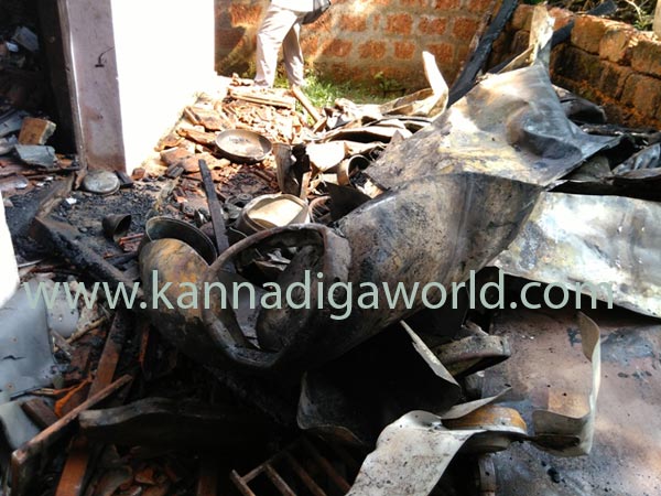 It is said the house hold had been away when the incident took place. Two LPG cylinders that was inside the house got burst due to the fire. All the household items including clothes, documents, furniture’s, electronic goods were charred in fire.