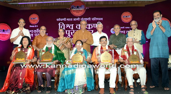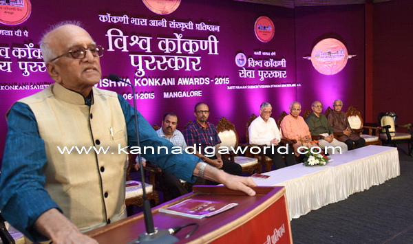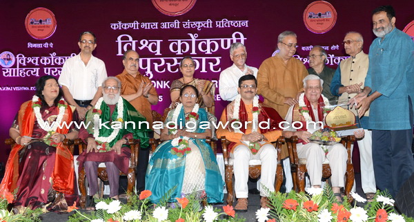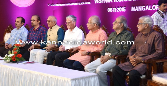 Mangaluru, November 7: The Vimala Pai Vishwa Konkani Sahitya Awards- 2015 and Basti Vaman Shenoy Vishwa Konkani Seva Awards- 2015 were presented to eminent achievers in a ceremony held on Thursday November 7th at T V Raman Pai Convention Centre here.