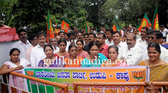 Udupi; District BJP unit staged protest rally to condemn the amendment of Panchayath Raj Act 2013. at Taluk Panchayath office Bannanje.