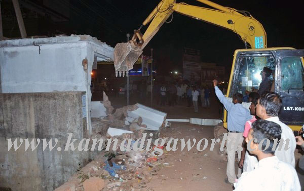 Mangaluru, December 17: A team led by assistant commissioner and other revenue officials in an operation evicted compound walls, in Thokkotu junction and gave final deadline as next Monday to completely clear the shops due to which the National highway 66 widening work has remained pending.